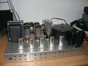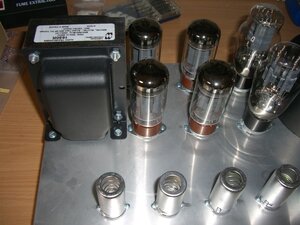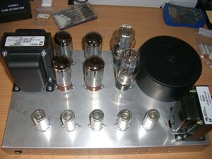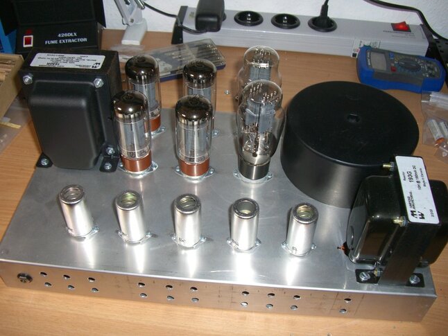 Just wanted to give a quick update about how things are progressing. Holes for front pots are drilled and tube sockets along with most of the iron is mounted. I chose to go with a custom wound toroidal mains transformer from Dirk at https://www.tube-town.net/ which needs to be screwed down to the chassis still. The layout is crammed of course but it might just work. If it creates problems I might need to use a bigger chassis but I'll decide that when I get there.